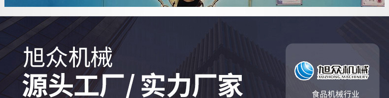 廣州旭眾食品機械有限公司是一家集科研開發(fā),生產(chǎn)設計,營銷服務為一體的現(xiàn)代化生產(chǎn)企業(yè)。現(xiàn)代化生產(chǎn)車間,精湛制造技術,所產(chǎn)機械歷經(jīng)市場重重考驗,不斷贏得海內(nèi)外客戶的贊譽。