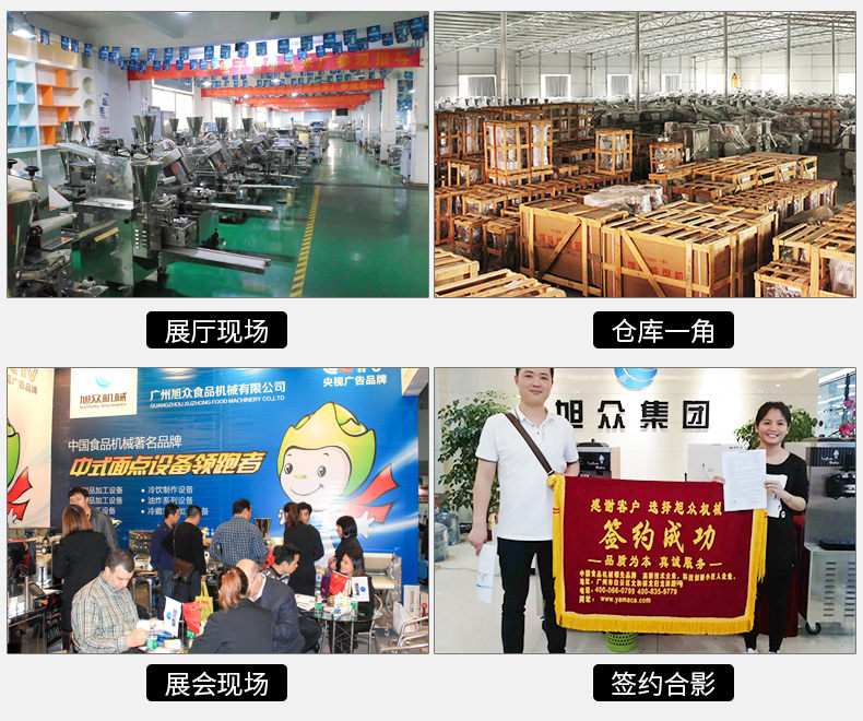 廣州旭眾食品機械有限公司是一家集科研開發(fā),生產設計,營銷服務為一體的現(xiàn)代化生產企業(yè)?,F(xiàn)代化生產車間,精湛制造技術,所產機械歷經市場重重考驗,不斷贏得海內外客戶的贊譽。