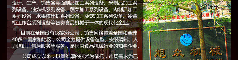 廣州旭眾食品機(jī)械有限公司是一家集科研開發(fā),生產(chǎn)設(shè)計(jì),營(yíng)銷服務(wù)為一體的現(xiàn)代化生產(chǎn)企業(yè)?,F(xiàn)代化生產(chǎn)車間,精湛制造技術(shù),所產(chǎn)機(jī)械歷經(jīng)市場(chǎng)重重考驗(yàn),不斷贏得海內(nèi)外客戶的贊譽(yù)。