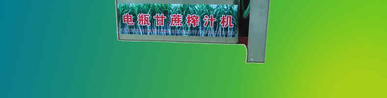 電瓶式甘庶汁機(jī),采用全不銹鋼外殼,外形美觀,榨汁滾輪,機(jī)頭部件都經(jīng)過(guò)嚴(yán)格的防銹仿腐蝕處理,保證蔗汁符合衛(wèi)生標(biāo)準(zhǔn),適合賓館、卡拉OK廳、水果店、冷飲店、涼茶店、車站、超市等服務(wù)行業(yè)壓榨各種甘蔗之用。