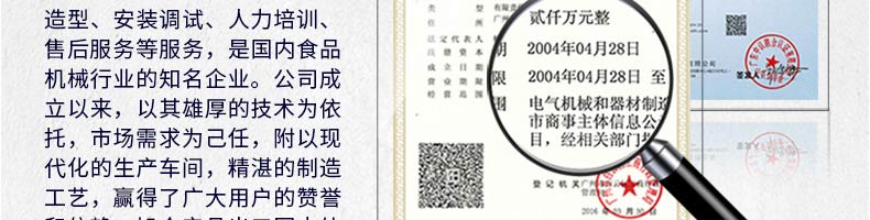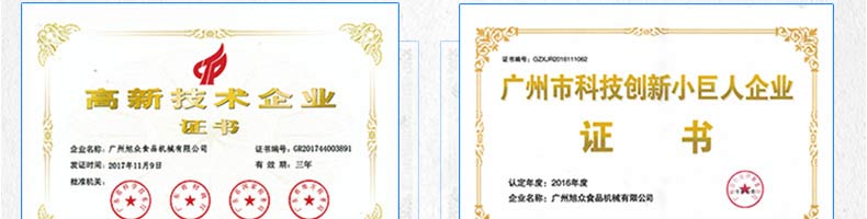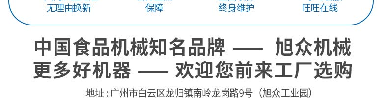 廣州旭眾食品機械有限公司是一家集科研開發(fā),生產設計,營銷服務為一體的現(xiàn)代化生產企業(yè)?,F(xiàn)代化生產車間,精湛制造技術,所產機械歷經市場重重考驗,不斷贏得海內外客戶的贊譽。