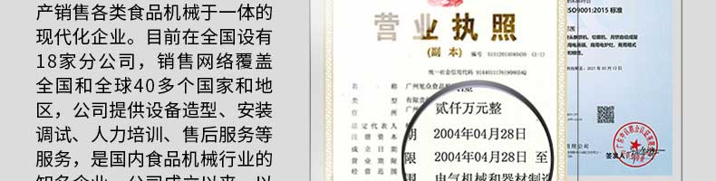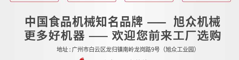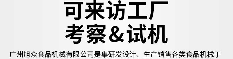 廣州旭眾食品機(jī)械有限公司是一家集科研開(kāi)發(fā),生產(chǎn)設(shè)計(jì),營(yíng)銷服務(wù)為一體的現(xiàn)代化生產(chǎn)企業(yè)?,F(xiàn)代化生產(chǎn)車間,精湛制造技術(shù),所產(chǎn)機(jī)械歷經(jīng)市場(chǎng)重重考驗(yàn),不斷贏得海內(nèi)外客戶的贊譽(yù)。