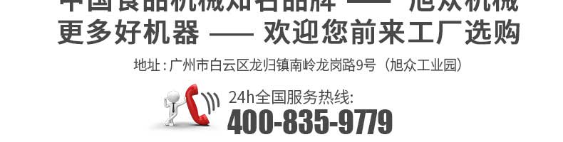 廣州旭眾食品機(jī)械有限公司是一家集科研開發(fā),生產(chǎn)設(shè)計(jì),營銷服務(wù)為一體的現(xiàn)代化生產(chǎn)企業(yè)?,F(xiàn)代化生產(chǎn)車間,精湛制造技術(shù),所產(chǎn)機(jī)械歷經(jīng)市場(chǎng)重重考驗(yàn),不斷贏得海內(nèi)外客戶的贊譽(yù)。