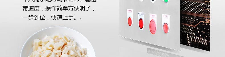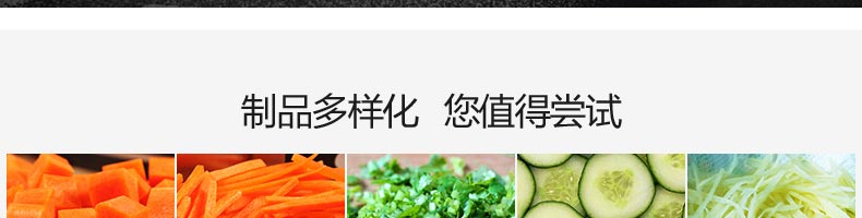 XZ-680A多功能切菜機(jī),一機(jī)多用,可切葉菜及根莖類(lèi)蔬菜,并可切片、絲、條、丁、段,碎等,切菜規(guī)格可根據(jù)不同需要調(diào)節(jié)尺寸,方便快捷。隨機(jī)共配送三套刀具。