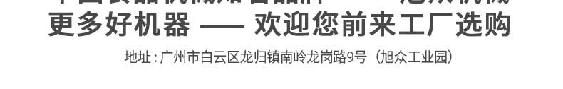 廣州旭眾食品機械有限公司是一家集科研開發(fā),生產(chǎn)設(shè)計,營銷服務(wù)為一體的現(xiàn)代化生產(chǎn)企業(yè)?,F(xiàn)代化生產(chǎn)車間,精湛制造技術(shù),所產(chǎn)機械歷經(jīng)市場重重考驗,不斷贏得海內(nèi)外客戶的贊譽。