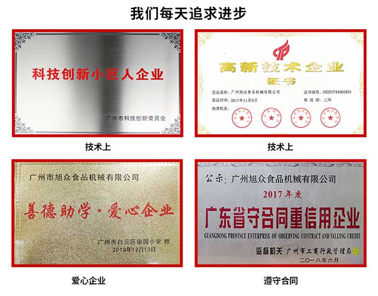 廣州旭眾食品機械有限公司是一家集科研開發(fā),生產(chǎn)設(shè)計,營銷服務(wù)為一體的現(xiàn)代化生產(chǎn)企業(yè)?,F(xiàn)代化生產(chǎn)車間,精湛制造技術(shù),所產(chǎn)機械歷經(jīng)市場重重考驗,不斷贏得海內(nèi)外客戶的贊譽。