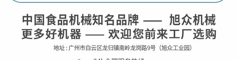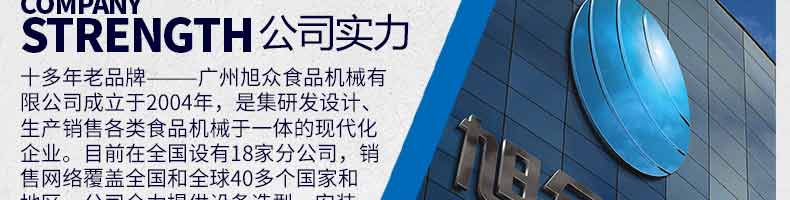 廣州旭眾食品機械有限公司是一家集科研開發(fā),生產(chǎn)設(shè)計,營銷服務(wù)為一體的現(xiàn)代化生產(chǎn)企業(yè)。現(xiàn)代化生產(chǎn)車間,精湛制造技術(shù),所產(chǎn)機械歷經(jīng)市場重重考驗,不斷贏得海內(nèi)外客戶的贊譽。