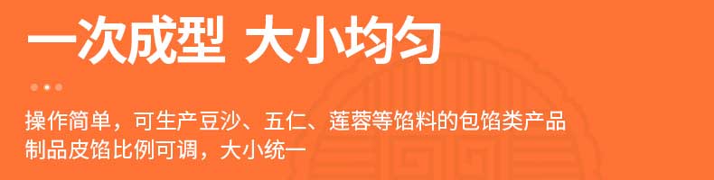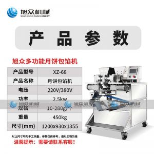 XZ-68月餅包餡機(jī),一次成型大小均勻,操作簡單,可生產(chǎn)豆沙、五仁、蓮蓉等餡料的包餡類產(chǎn)品制品皮餡比例可調(diào),大小統(tǒng)