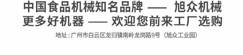 廣州旭眾食品機械有限公司是一家集科研開發(fā),生產(chǎn)設(shè)計,營銷服務為一體的現(xiàn)代化生產(chǎn)企業(yè)?,F(xiàn)代化生產(chǎn)車間,精湛制造技術(shù),所產(chǎn)機械歷經(jīng)市場重重考驗,不斷贏得海內(nèi)外客戶的贊譽。