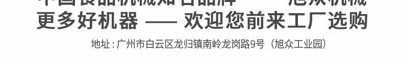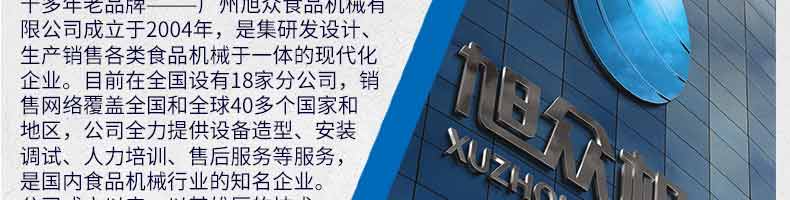 廣州旭眾食品機(jī)械有限公司是一家集科研開發(fā),生產(chǎn)設(shè)計(jì),營銷服務(wù)為一體的現(xiàn)代化生產(chǎn)企業(yè)。現(xiàn)代化生產(chǎn)車間,精湛制造技術(shù),所產(chǎn)機(jī)械歷經(jīng)市場重重考驗(yàn),不斷贏得海內(nèi)外客戶的贊譽(yù)。