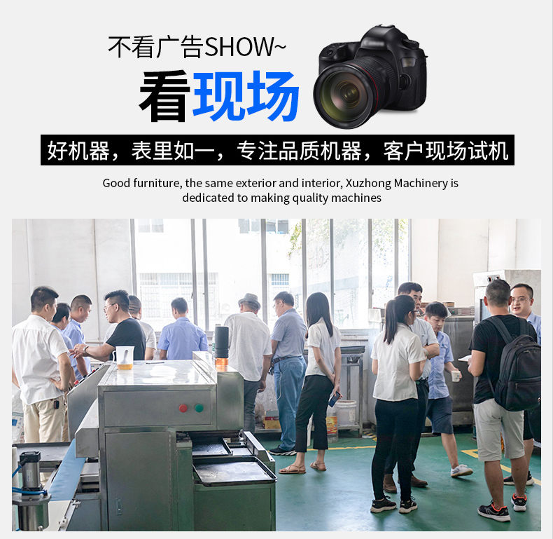 廣州旭眾食品機械有限公司是一家集科研開發(fā),生產設計,營銷服務為一體的現(xiàn)代化生產企業(yè)?,F(xiàn)代化生產車間,精湛制造技術,所產機械歷經市場重重考驗,不斷贏得海內外客戶的贊譽。