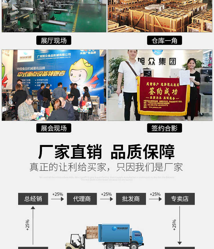 廣州旭眾食品機(jī)械有限公司是一家集科研開發(fā),生產(chǎn)設(shè)計(jì),營銷服務(wù)為一體的現(xiàn)代化生產(chǎn)企業(yè)。現(xiàn)代化生產(chǎn)車間,精湛制造技術(shù),所產(chǎn)機(jī)械歷經(jīng)市場重重考驗(yàn),不斷贏得海內(nèi)外客戶的贊譽(yù)。