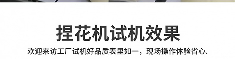 名稱XZ-7200捏花機(jī) 電源220V 功率0.75KW 產(chǎn)量請(qǐng)咨詢銷售員 尺寸1355×650×1310mm 重量請(qǐng)咨詢銷售員 規(guī)格 其他