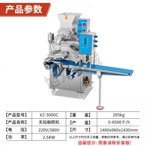 名稱XZ-5000C糍粑機(jī) 電源220V/380V 功率2.5KW 產(chǎn)量0-6500個(gè)/h 尺寸1460x960x1430mm以上尺寸均為手工測(cè)量,參數(shù)僅供參考 重量295kg 規(guī)格 其他