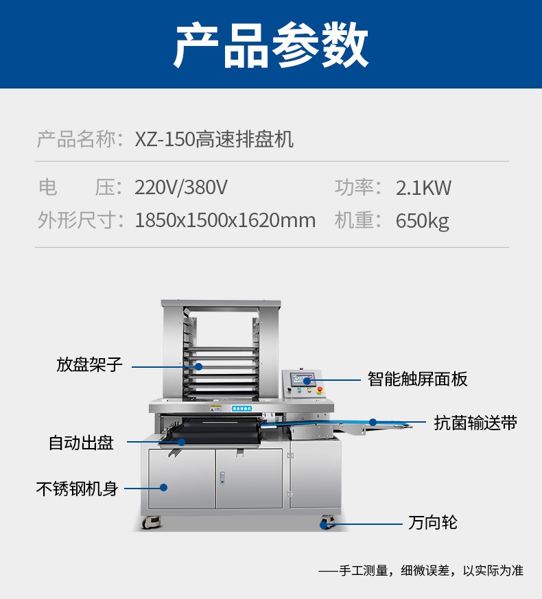 名稱多功能商用高速排盤機(jī) 電源220V/380V 功率2.1KW 產(chǎn)量 尺寸1850x1500x1620mm 重量650kg 規(guī)格 其他