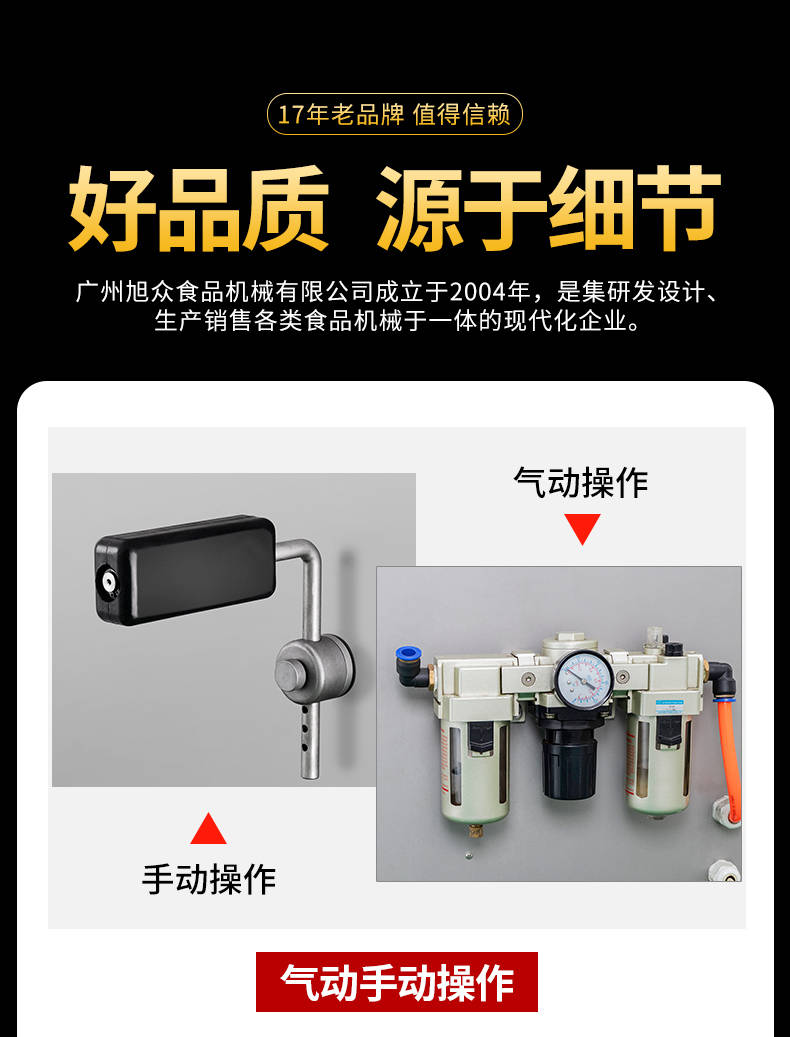 廣州旭眾食品機(jī)械有限公司是一家集科研開發(fā),生產(chǎn)設(shè)計(jì),營銷服務(wù)為一體的現(xiàn)代化生產(chǎn)企業(yè)。現(xiàn)代化生產(chǎn)車間,精湛制造技術(shù),所產(chǎn)機(jī)械歷經(jīng)市場重重考驗(yàn),不斷贏得海內(nèi)外客戶的贊譽(yù)。