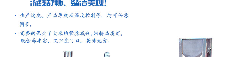 名稱SZ-HF-150涼皮機 電源220/380V 功率0.75/41kw 產(chǎn)量60/90/120/150kg/h 尺寸主機尺寸3500*720*1050mm 外形尺寸3600*920*1500mm 重量320kg 規(guī)格粉條寬度mm:4/6/8/10 其他