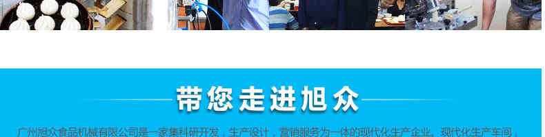 廣州旭眾食品機械有限公司是一家集科研開發(fā),生產設計,營銷服務為一體的現(xiàn)代化生產企業(yè)?,F(xiàn)代化生產車間,精湛制造技術,所產機械歷經市場重重考驗,不斷贏得海內外客戶的贊譽。