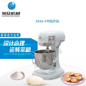 SZM-5型攪拌機,可用于攪拌奶油、蛋糕液、餡料及和制面團等操作。打蛋攪拌機等作攪拌食料、揉和面團之用,是生產優(yōu)質糕點的理想設備,適用于酒店、飯店、學校部門、面包屋以及食品廠家。