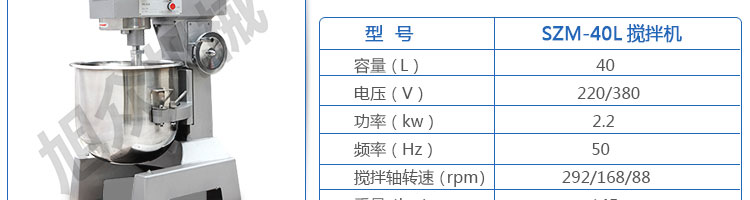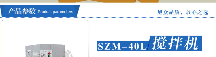名稱SZM-40、50、60攪拌機系列 電源220/380V 220/380V 220/380V 功率2.2KW 2.6KW 3.5KW 產(chǎn)量 尺寸外形尺寸700*550*990mm 870*600*1170mm 900*620*1250mm 重量145kg 248kg 265kg 規(guī)格 其他
