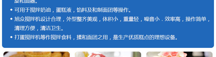SZM-40、50、60攪拌機系列,可用于攪拌奶油、蛋糕液、餡料及和制面團等操作。打蛋攪拌機等作攪拌食料、揉和面團之用,是生產(chǎn)優(yōu)質(zhì)糕點的理想設(shè)備,適用于酒店、飯店、學(xué)校部門、面包屋以及食品廠家。