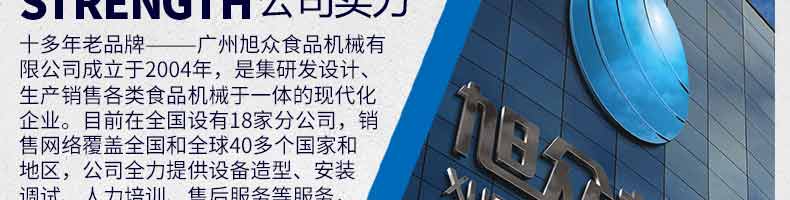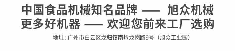 廣州旭眾食品機械有限公司是一家集科研開發(fā),生產(chǎn)設(shè)計,營銷服務(wù)為一體的現(xiàn)代化生產(chǎn)企業(yè)。現(xiàn)代化生產(chǎn)車間,精湛制造技術(shù),所產(chǎn)機械歷經(jīng)市場重重考驗,不斷贏得海內(nèi)外客戶的贊譽。