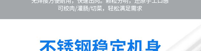 XZL-32A絞肉機(jī),快速絞肉它做得到。告別單一,多項(xiàng)功能,絞肉絞菜灌腸輕松搞定。機(jī)身小巧使用便利,是廚房的理想之選絞餡無壓力,適合餐廳,飯店,酒店等場(chǎng)所使用無焊接方便耐用,快速出肉。顆粒分明,還原手工口感可絞肉/灌腸/切菜,輕松滿足需求。