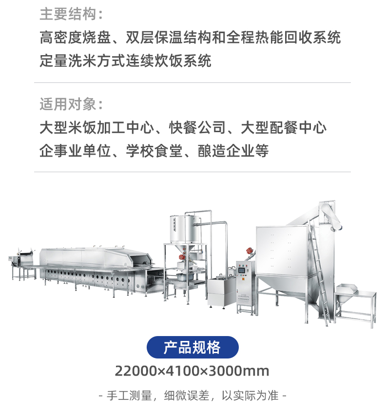 米飯生產(chǎn)線,主要結(jié)構(gòu):不銹鋼箱體,密閉不銹鋼飯盤,自動(dòng)加熱循環(huán)系統(tǒng)。適用對(duì)象:大型米飯加工中心、快餐公司、大型配餐中心企事業(yè)單位、學(xué)校食堂、釀造企業(yè)等。實(shí)力大咖商用好幫手。提供培訓(xùn)、指導(dǎo)和工藝傳授,品牌服務(wù)有保障。