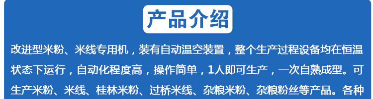 SZ-250多功能米粉機(jī),生產(chǎn)多樣性可生產(chǎn)米粉、米線、粉絲、粉條、、年糕、玉米面條、各種雜糧粉絲、各種面條、雜糧面條、彩色面條以及以紅薯、玉米、大豆、蠶豆等制成淀粉為原料的等多種食品而且每種食品厚薄、粗細(xì)等規(guī)格可根據(jù)需要任意調(diào)整。
