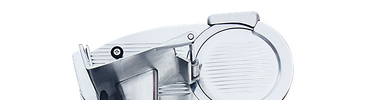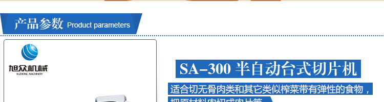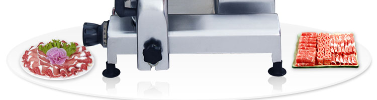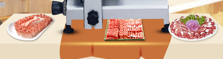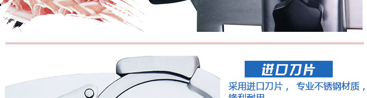 臺式半自動切片機,適合切無骨肉類和其他類似榨菜帶有彈性的食物,把原材料肉切成肉片,并可自動成卷狀??汕信H馄⒀蛉馄?/p>