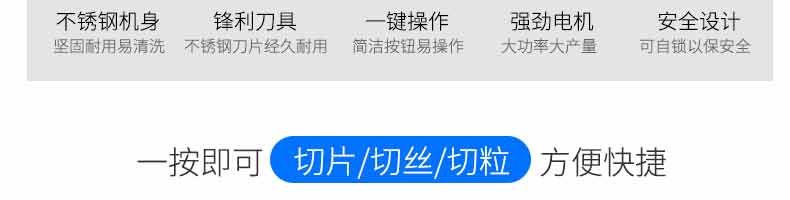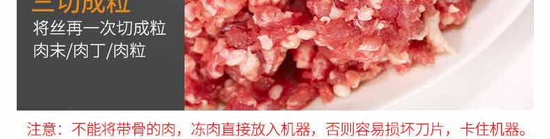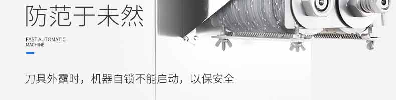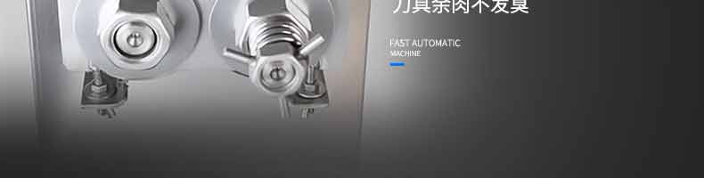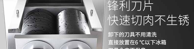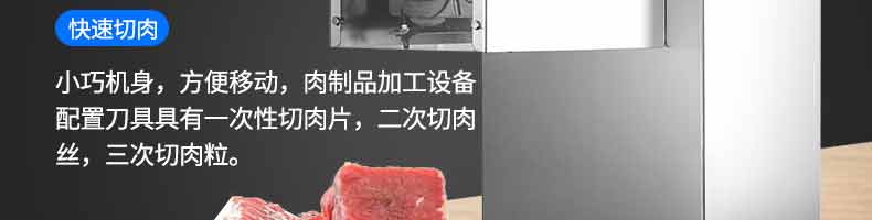 XZ-QX320-切肉機,小型切肉機是一款主要對肉類進行加工的設備,配置單層刀具一次性切肉片,二次切肉絲,再切成料。刀具采取外置懸臂式設計,拆洗方便,衛(wèi)生更有保障;配置多種刀具,可加工不同厚度的肉片,實現一機多用;機內裝有安全保護開頭,刀具外露時,機器自鎖不能啟動,以保安全;卸下的刀具,不用清洗直接放置在6攝氏度以下的冰箱里,刀具余肉不發(fā)臭。刀片用特殊不銹鋼材料制造,經久耐用。