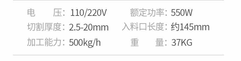 名稱XZ-QX320-切肉機 電源110/220V 功率0.55kw 產量250kg/h 尺寸450*320*430mm 重量33kg 規(guī)格 其他