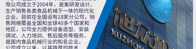 廣州旭眾食品機械有限公司是一家集科研開發(fā),生產設計,營銷服務為一體的現代化生產企業(yè)?,F代化生產車間,精湛制造技術,所產機械歷經市場重重考驗,不斷贏得海內外客戶的贊譽。