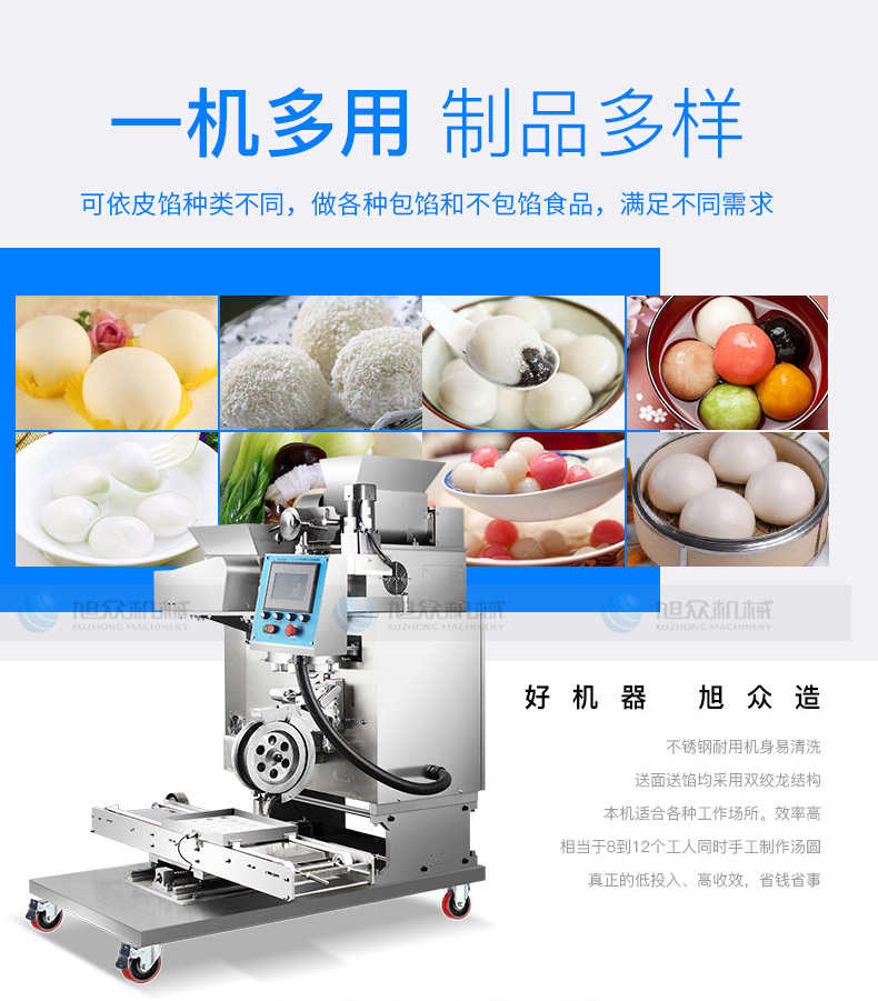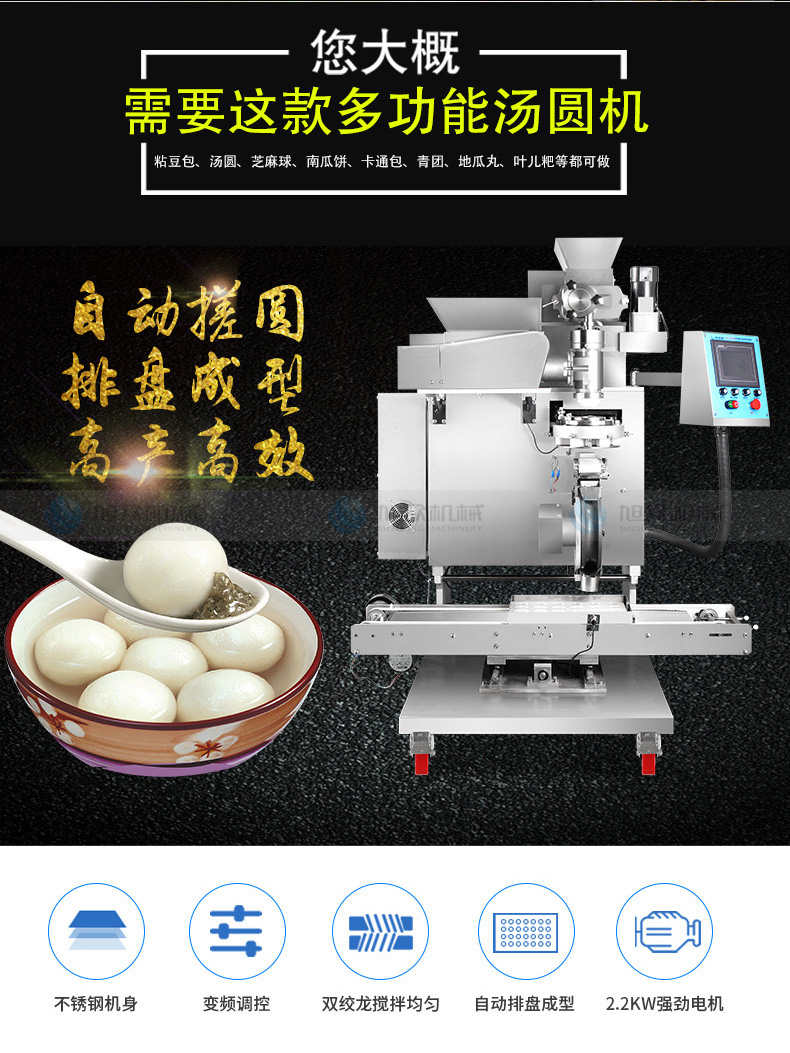 VFD-4000B湯丸機(jī),告別手工時(shí)代旭僉多功能湯圓機(jī)輕松解決問(wèn)題。大產(chǎn)量輕松滿足需求容量大強(qiáng)勁電機(jī),產(chǎn)量可達(dá)4000個(gè)小時(shí),爭(zhēng)取每一分黃金時(shí)間