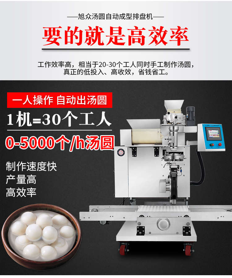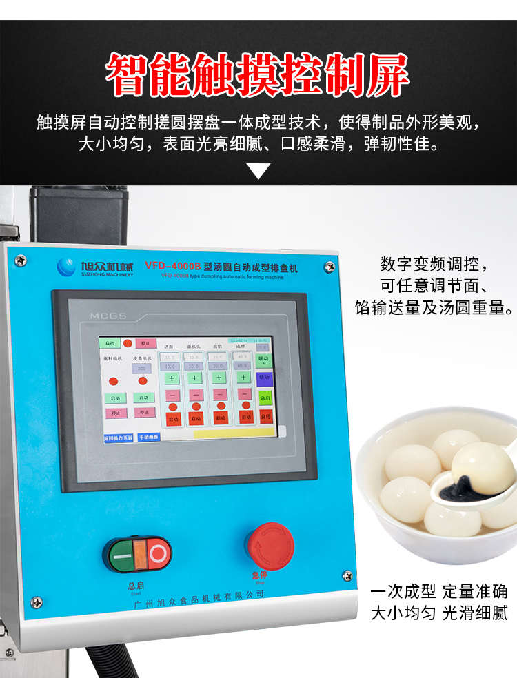 VFD-4000B湯圓機,定量準確自動搓圓排盤成型大小均勻口感柔滑??芍谱鞲魇桨W食品,如湯圓、芝麻球、豆沙包、南瓜餅、奶黃包等