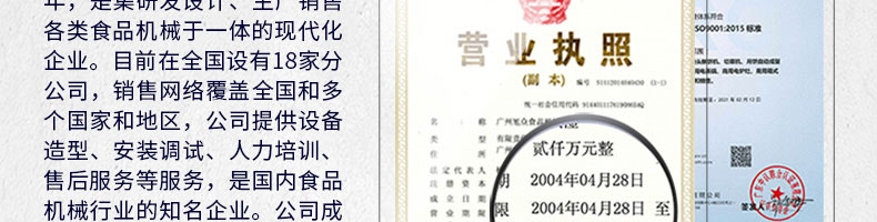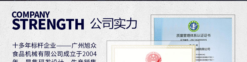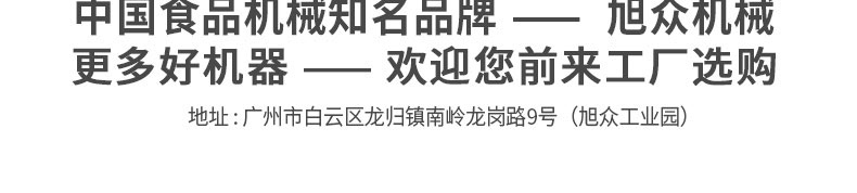 廣州旭眾食品機(jī)械有限公司是一家集科研開(kāi)發(fā),生產(chǎn)設(shè)計(jì),營(yíng)銷服務(wù)為一體的現(xiàn)代化生產(chǎn)企業(yè)?,F(xiàn)代化生產(chǎn)車間,精湛制造技術(shù),所產(chǎn)機(jī)械歷經(jīng)市場(chǎng)重重考驗(yàn),不斷贏得海內(nèi)外客戶的贊譽(yù)。