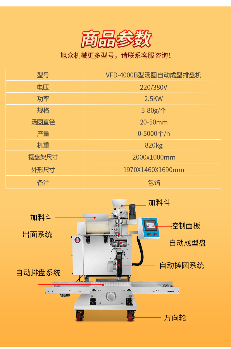 旭眾VFD-4000型湯圓自動成型排盤一體機,竟然能做這么多的品種?
