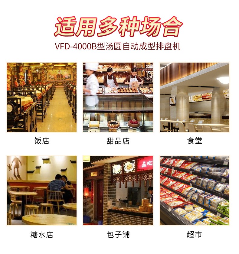 今天給大家介紹一下這款VFD-4000B型湯圓機,為什么要介紹它呢,這款機械制作多品種食品,關(guān)鍵是產(chǎn)量效率高,1小時的產(chǎn)量可達5000個,相當于20-30個工人同時手工制作湯圓,真正的低投入,高收益,省錢省工,可制作各式包餡食品,如湯圓、豆沙包、南瓜餅等,是賓館、飯店、企業(yè)、學(xué)校、部隊等公共食堂和專業(yè)戶理想的面食機械。