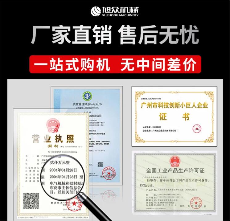 廣州旭眾食品機(jī)械有限公司是一家集科研開發(fā),生產(chǎn)設(shè)計(jì),營銷服務(wù)為一體的現(xiàn)代化生產(chǎn)企業(yè)?,F(xiàn)代化生產(chǎn)車間,精湛制造技術(shù),所產(chǎn)機(jī)械歷經(jīng)市場重重考驗(yàn),不斷贏得海內(nèi)外客戶的贊譽(yù)。