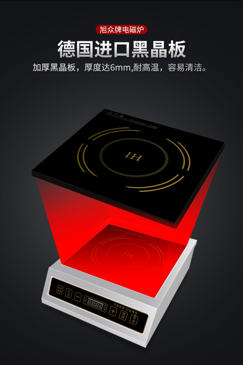 旭眾無明火電磁爐,電磁灶,通過電磁感應(yīng)工作的,所以不必?fù)?dān)心會像煤氣爐那樣因漏氣而引起爆炸或火災(zāi)等嚴(yán)重隱患。是 家用/商用理想選擇 !歡迎廣大餐飲行業(yè)精英來旭眾考察,選擇適合您的高效節(jié)能環(huán)保加熱設(shè)備。