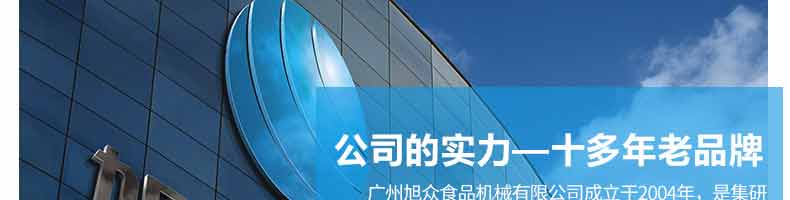 廣州旭眾食品機械有限公司是一家集科研開發(fā),生產(chǎn)設計,營銷服務為一體的現(xiàn)代化生產(chǎn)企業(yè)?,F(xiàn)代化生產(chǎn)車間,精湛制造技術(shù),所產(chǎn)機械歷經(jīng)市場重重考驗,不斷贏得海內(nèi)外客戶的贊譽。
