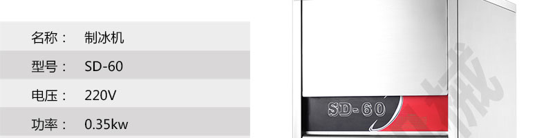 名稱SD23、28、40、48、60制冰機(jī)系列 電源 功率 產(chǎn)量 尺寸 重量 規(guī)格 其他
