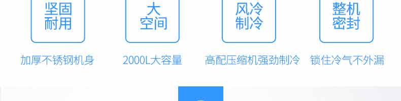 XZ-速凍柜,實力派,不妥協(xié)。4大強勢來襲,源自生活所需。堅固耐用、大空間、風(fēng)冷制冷、整機密封、加厚不銹鋼機身,2000L大容量,高配壓縮機強勁制,令鎖住冷氣不外漏。