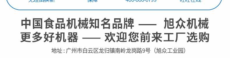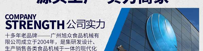 廣州旭眾食品機械有限公司是一家集科研開發(fā),生產(chǎn)設(shè)計,營銷服務(wù)為一體的現(xiàn)代化生產(chǎn)企業(yè)?,F(xiàn)代化生產(chǎn)車間,精湛制造技術(shù),所產(chǎn)機械歷經(jīng)市場重重考驗,不斷贏得海內(nèi)外客戶的贊譽。